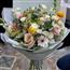 玫瑰、非洲菊、洋桔梗和季节性花材组成、精美包装.